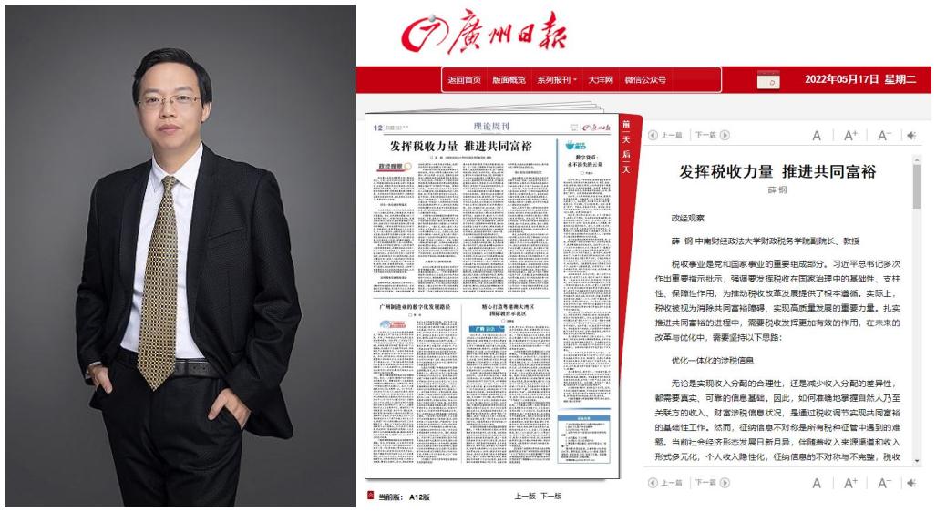作者简介:薛钢,中南财经政法大学财政税务学院教授,博士生导师。主要研究方向为财税基础理论、税收制度与政策、企业涉税风险控制与税收筹划。主持国家社会科学基金项目、湖北省社会科学基金项目等多项研究。