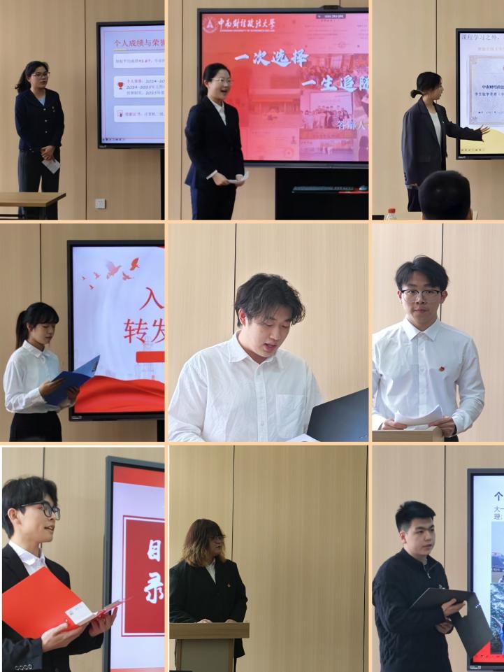 随后,答辩环节正式拉开帷幕。本次答辩会共有43名积极分子依次进行个人汇报。他们结合自身实际,围绕对党的认识、入党动机、理论学习、专业学习、社会实践、志愿服务以及自身存在的不足与改进方向等方面进行了全面而深入的阐述。各位积极分子以饱满的热情和真诚的态度,汇报了自身在培养考察期间思想、学习、工作和生活上的成长与收获,表达了坚定不移向党组织靠拢、渴望早日成为发展对象的强烈愿望,充分展现了新时代青年积极向上的精神风貌和追求进步的决心。
