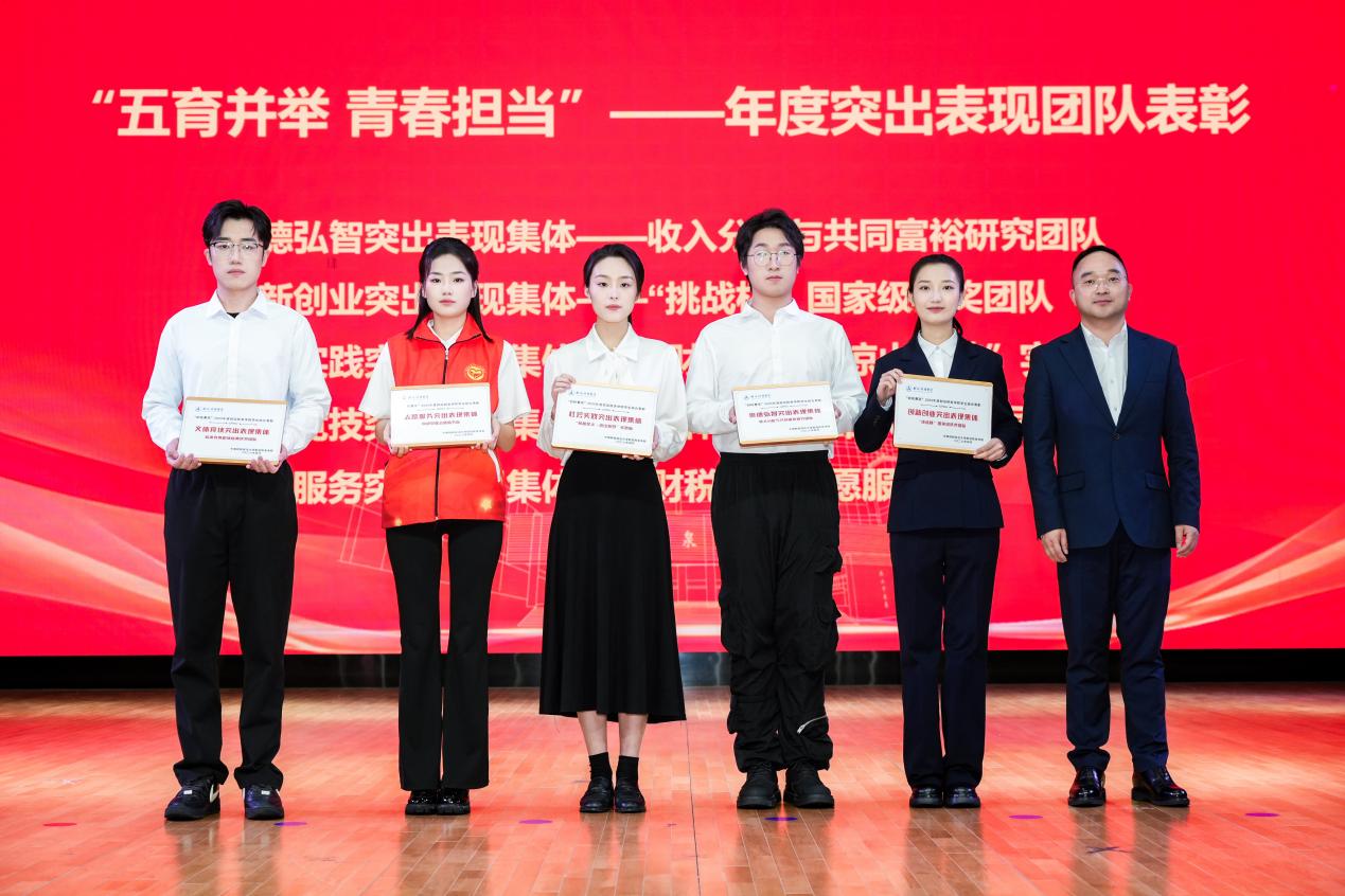 祁毓宣读“五育并举青春担当”——年度突出表现团队表彰名单,并由鲁元平为获奖团队颁奖。