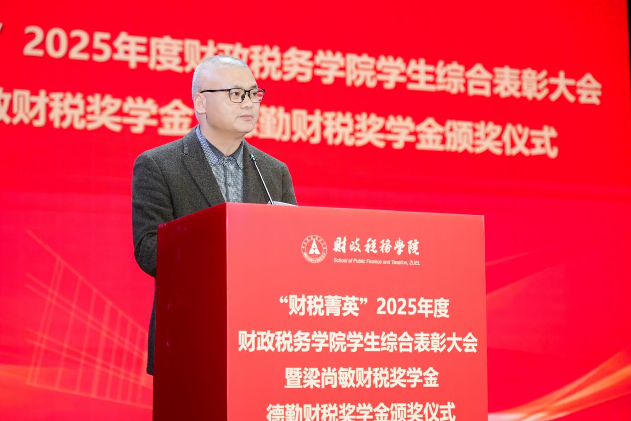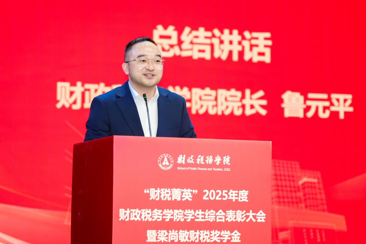 活动最后,鲁元平总结讲话。他首先代表学院向受表彰的先进集体和个人表示热烈祝贺,并向出席本次表彰活动的领导嘉宾表示诚挚感谢。鲁元平全面总结了学院2025年在党建引领、人才培养、师资队伍、学科建设等八大领域取得的标志性成果,明确将2026年定为学院“人才培养改革年”,重点推进三项“1234”计划,重塑人才培养模式。最后,他寄语全体财税学子,要做初心如磐的追光者、与时间为伴的深耕者、数智赋能的先行者,将个人理想融入国家发展大局,用专业力量书写新时代财税人的使命担当。