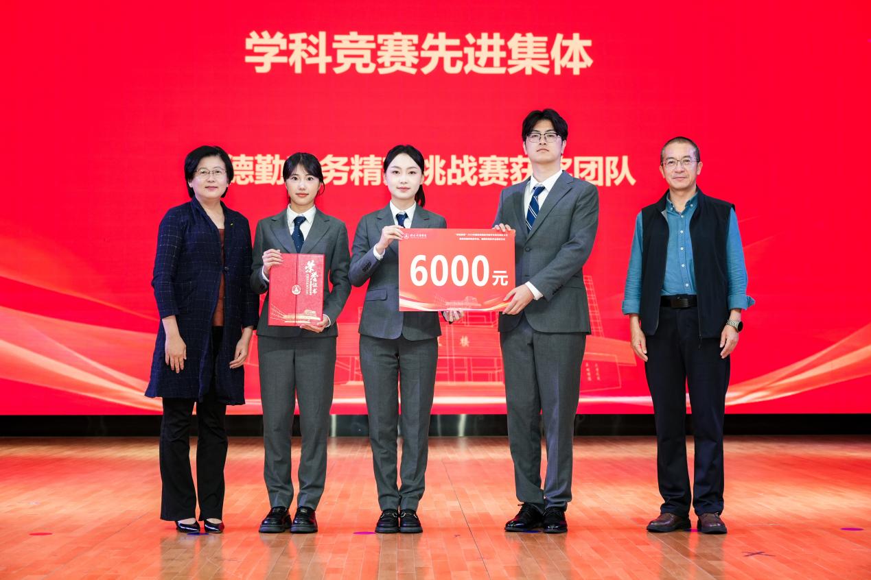 田彬彬宣读2025年梁尚敏财税奖学金先进集体奖项获奖名单,并由张文剑、傅小勇为获奖集体颁奖。