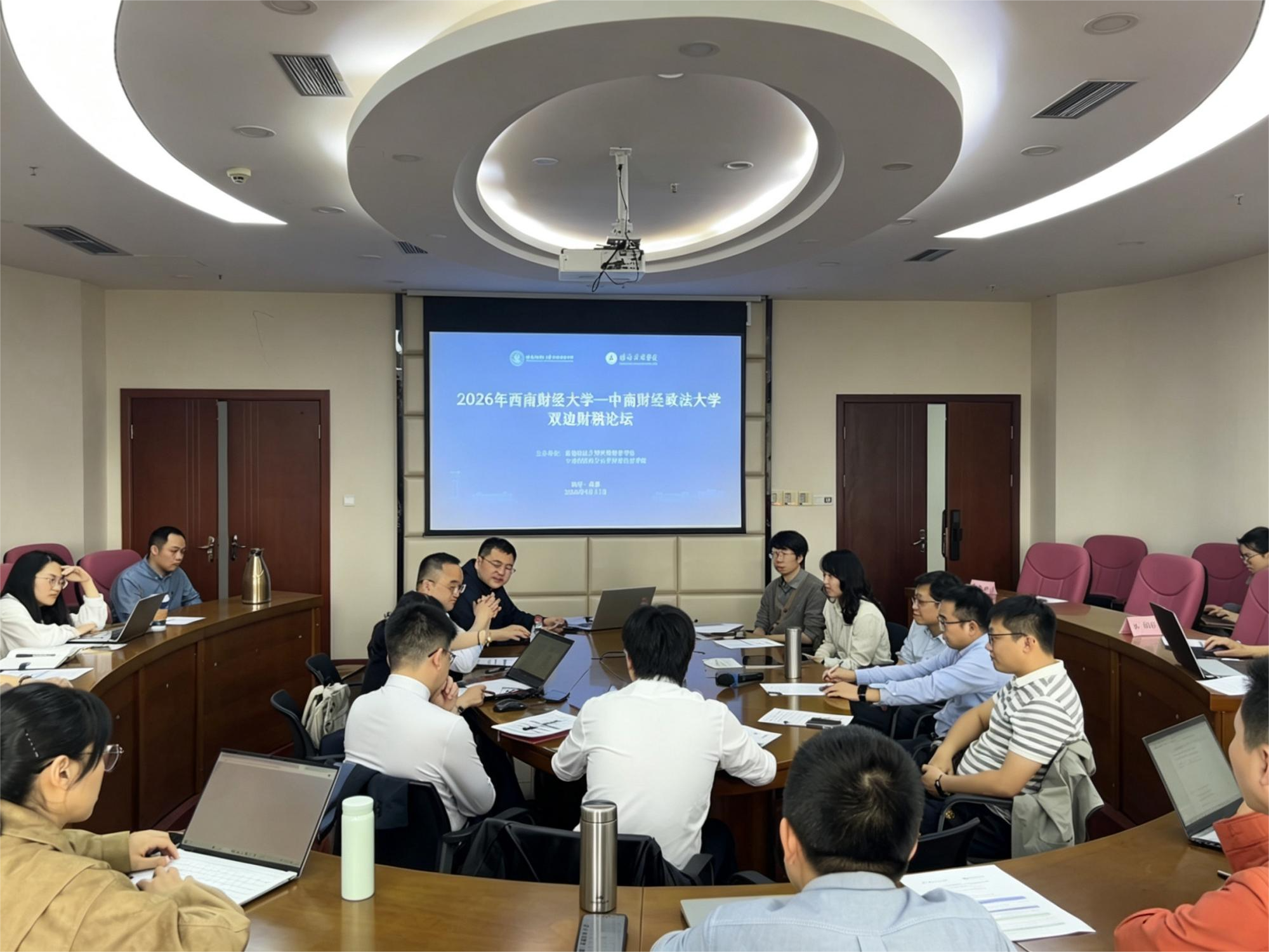 4月11日,“2026年西南财经大学—中南财经政法大学双边财税论坛”在西南财经大学柳林校区举行,这是中南财经政法大学财政税务学院今年举办的首场“双边财税论坛”。西南财经大学财政税务学院院长李建军教授、地方人大预算审查监督研究中心主任刘蓉教授、杨进教授、徐静教授(财政系)、张楠教授、李昊楠副教授、李佶冬老师、黄叙涵老师,中南财经政法大学财政税务学院院长鲁元平教授、副院长祁毓教授、陈思霞教授、赵颖教授、欧阳洁准聘副教授、卓张鹏老师等二十余位师生参加本次论坛,共探以实践为导向的人才培养新路径,交流财税学科建设经验。