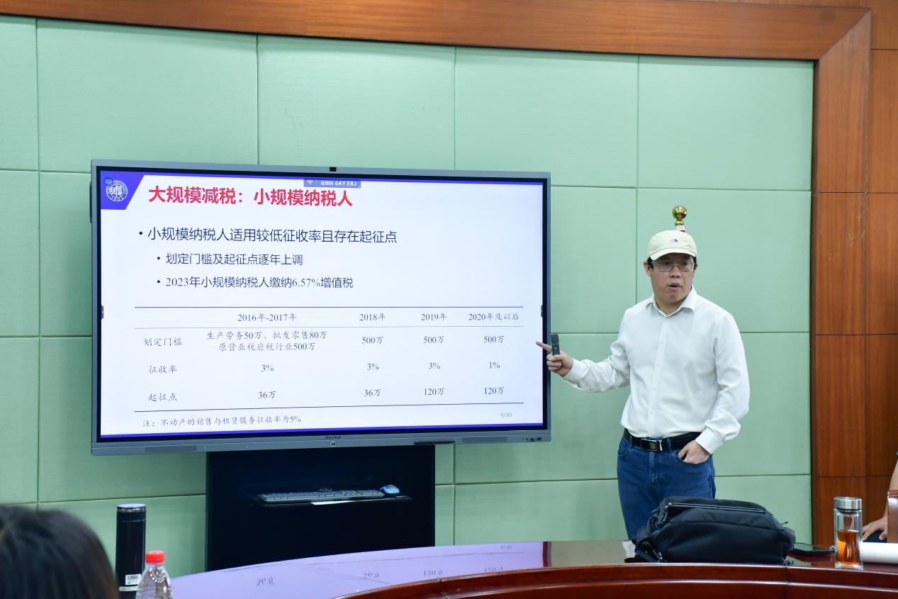 9月25日上午,文澜财税论坛(第109期)于文泉楼北603会议室顺利举行。本次讲座邀请到复旦大学经济学院刘志阔教授做题为“中国宏观税负的演进逻辑与税制改革框架”的学术报告,讲座由财政税务学院副院长田彬彬教授主持,学院部分教师和研究生共同参与了本次学术交流活动。