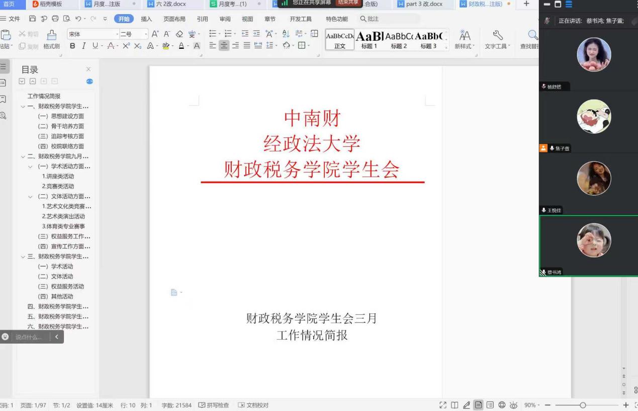 为保障换届后工作有序衔接,明确新学期工作方向,5月28日,财政税务学院学生会秘书处线上举行第一次工作例会,会议由秘书处全体成员参会。