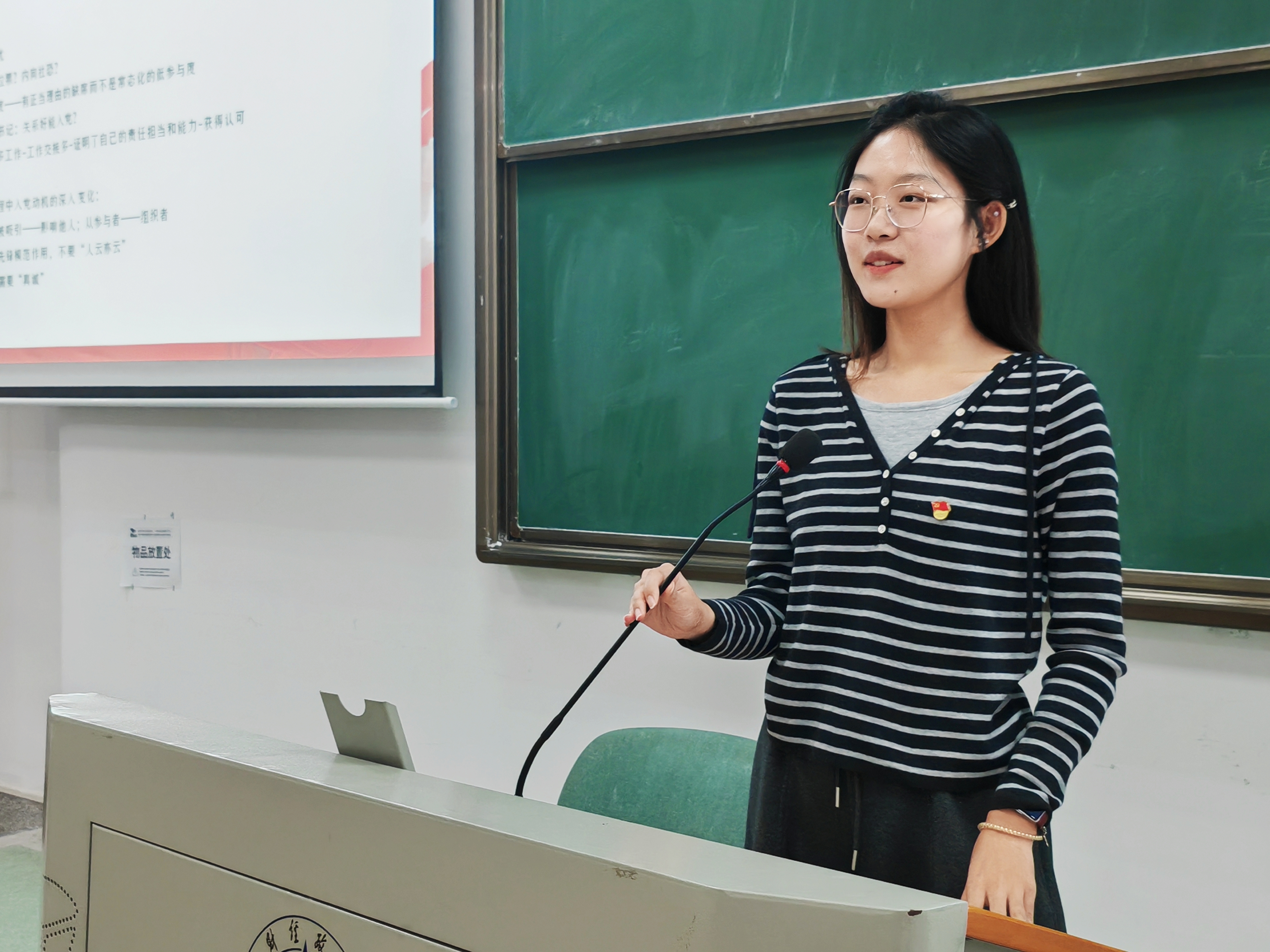 李璇同志依据《中国共产党发展党员工作细则》,从申请入党、入党积极分子培养、发展对象考察、预备党员接收与转正等阶段系统全面讲解发展党员工作流程。结合自身思想进步历程及实际工作中的典型案例,为同学们剖析对比纯粹正确的入党动机与“功利性入党”的错误倾向,引导同学们坚定理想信念、提升思想境界、加强党性锻炼,以实际行动积极向党组织靠拢。