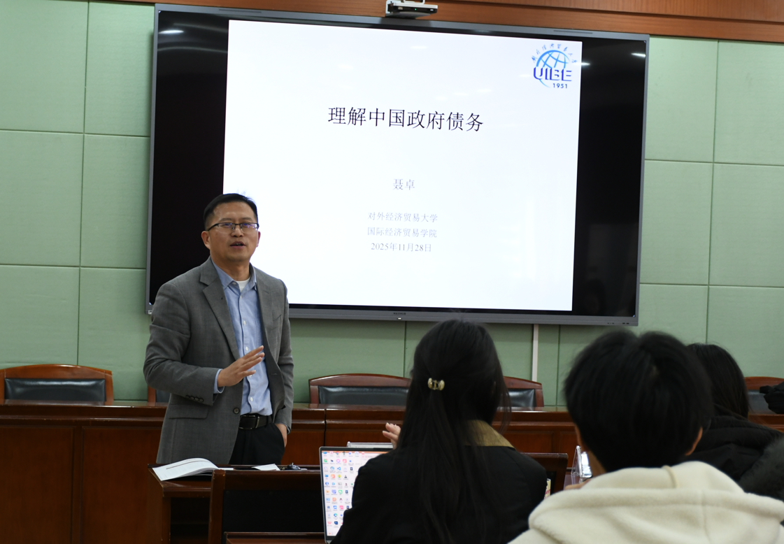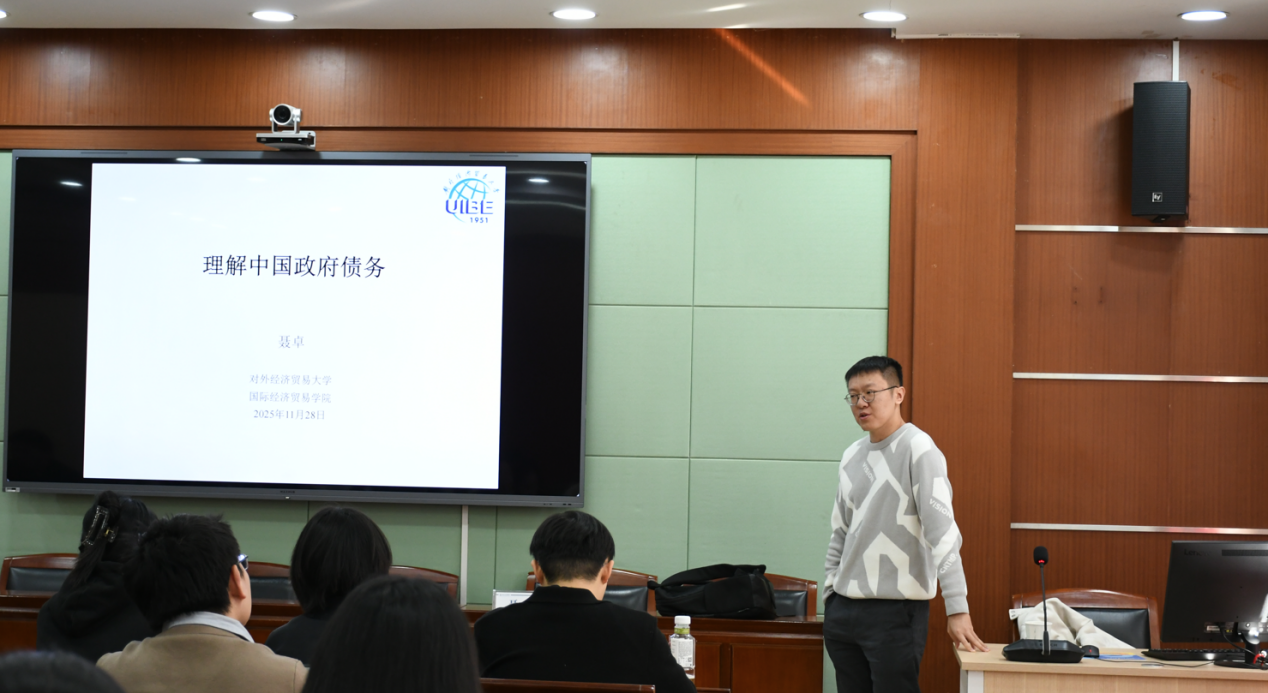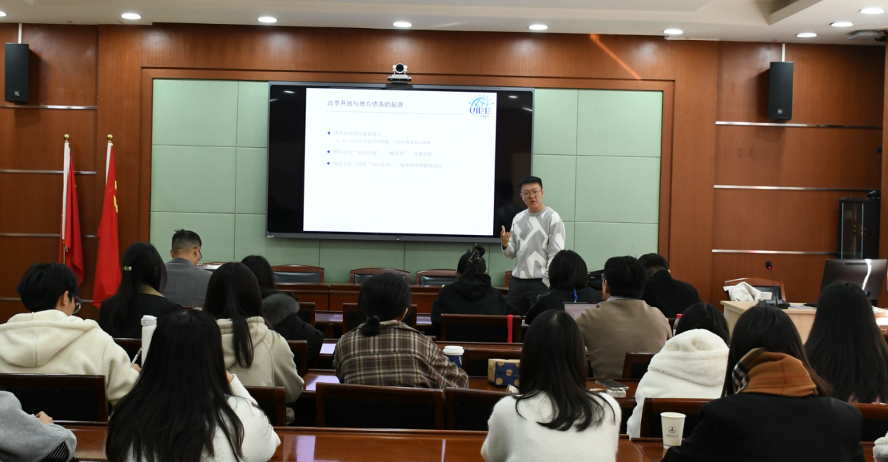 11月28日下午两点,财政税务学院文澜财税本科生高端讲座(第6期)顺利举行。本次讲座特邀对外经济贸易大学国际经济贸易学院聂卓老师为同学们带来题为“理解中国政府债务”的专题报告。讲座由魏福成副院长主持,吸引了学院各年级本科生、研究生和教师积极参与。