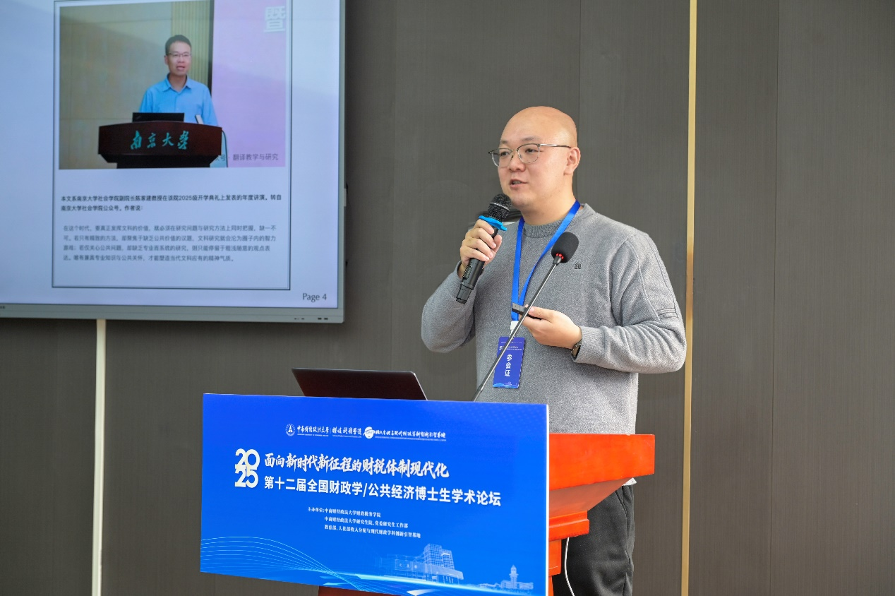中南财经政法大学财政税务学院2023级财政学博士研究生王怡婷同学发言