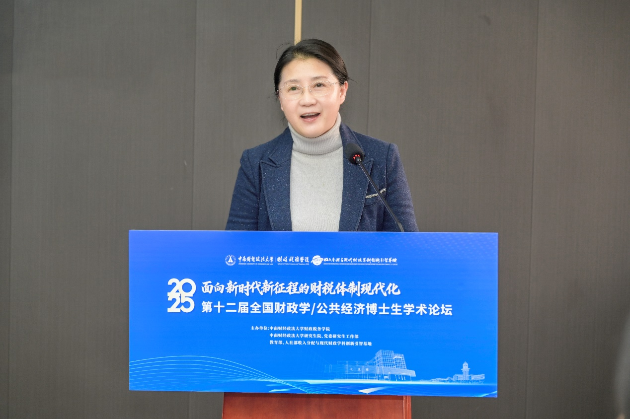 开幕式第一项,胡弘弘院长为论坛致辞。胡弘弘指出,中南财经政法大学依托财政学、公共经济学等优势特色学科,着力构建理论与实践深度融合、学术创新与社会服务协同并进的教育体系,为推进国家治理现代化培养了一批批兼具扎实理论功底和强烈使命担当的财经政法人才。本届论坛聚焦学术前沿动态,为广大博士生同学搭建了碰撞思想、交流成果、启迪智慧的学术平台。希望博士生们能够以此次学术论坛为契机,充分展示研究成果,积极交流学术思想,将学术追求融入国家大局,努力产出更多优质的研究成果。