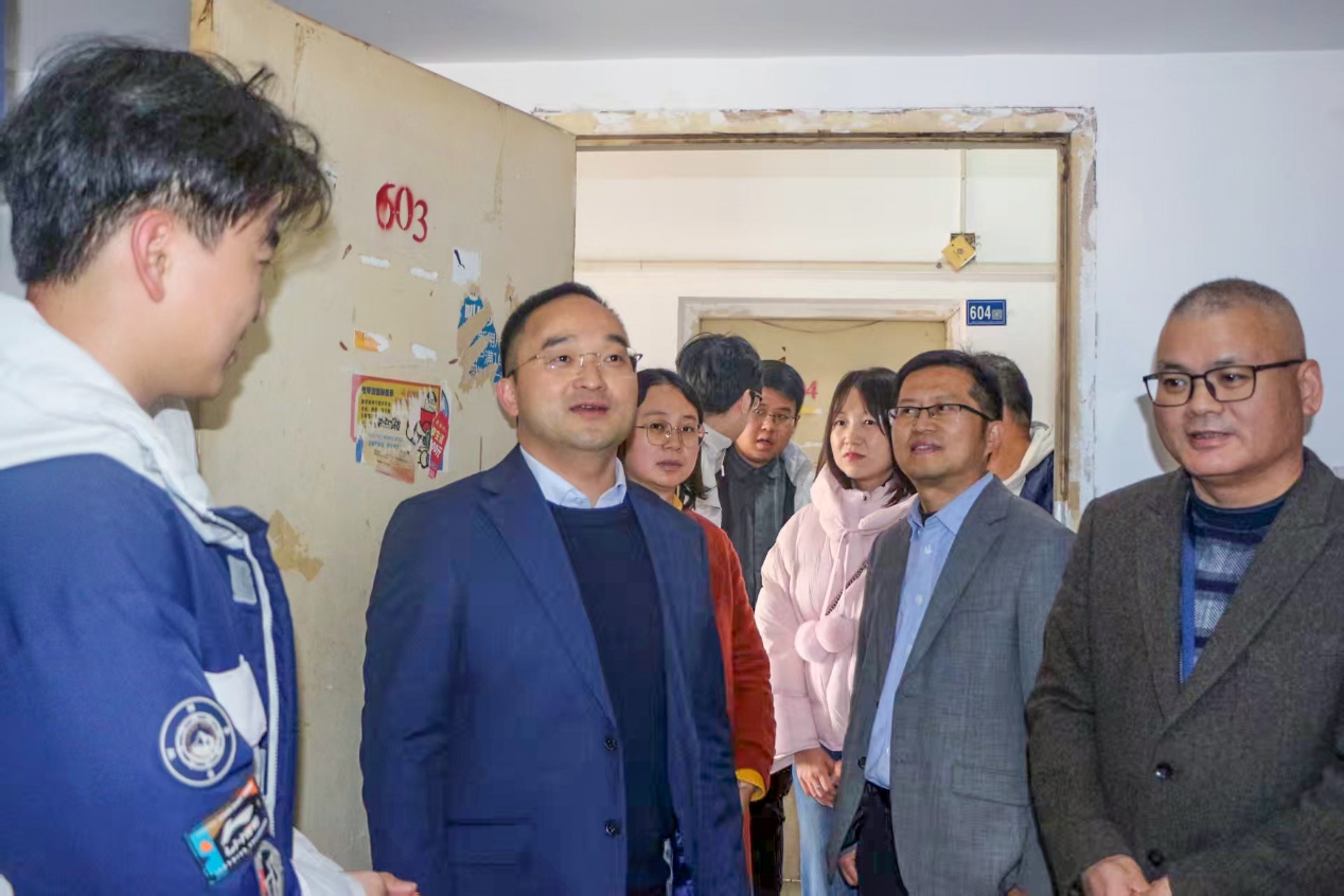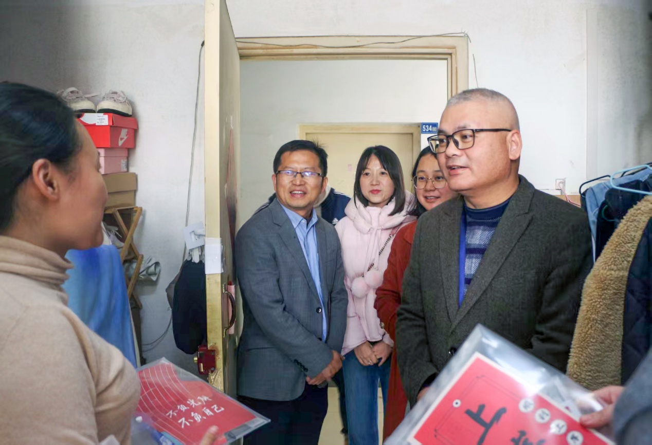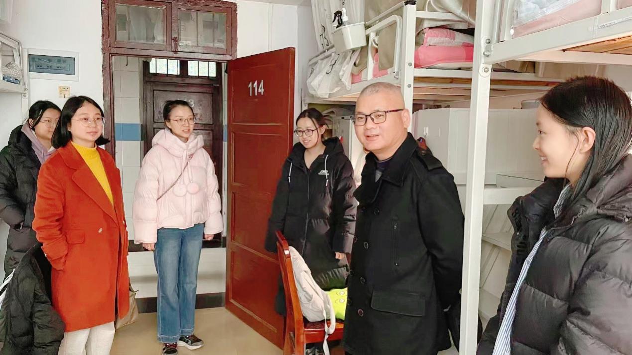 此外,学院领导还走进大一新生宿舍开展走访活动,深入了解新生入学以来对大学学习生活的适应情况并向同学们介绍学校分批进行的学生宿舍搬迁腾挪工作流程。走访中,领导与同学们交流学习节奏、生活习惯以及在融入大学环境过程中遇到的实际问题,鼓励大家尽快适应角色转变,养成良好的学习与生活习惯,稳步开启大学生活。