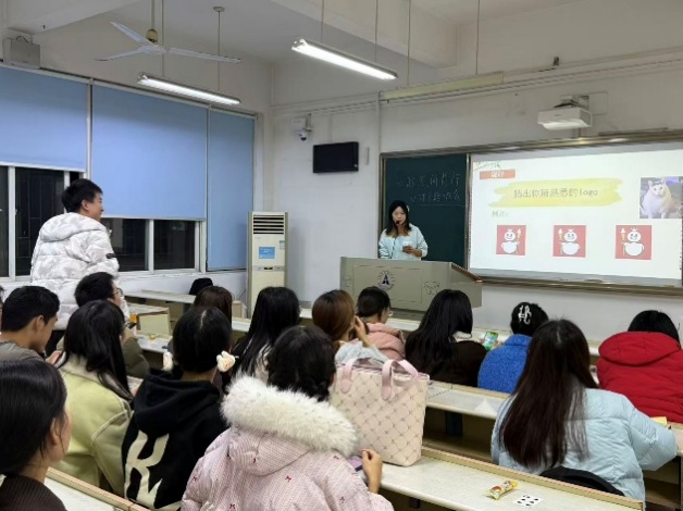 班会伊始,同学们通过抽取扑克牌随机分组,并参与了“猜Logo”“歌词填空”“谐音梗”等暖场游戏。各小组踊跃抢答,现场欢声笑语不断,迅速活跃了气氛。在随后的“减压赋能自我介绍”环节,同学们分享了家乡、爱好以及个人的减压“秘籍”。“我喜欢沿南湖夜跑来放松”,“我觉得和同学一起品尝西苑的美食特别解压”……这些贴近校园生活的分享引发了广泛共鸣,让大家在轻松交流中收获了实用的心理调适方法。