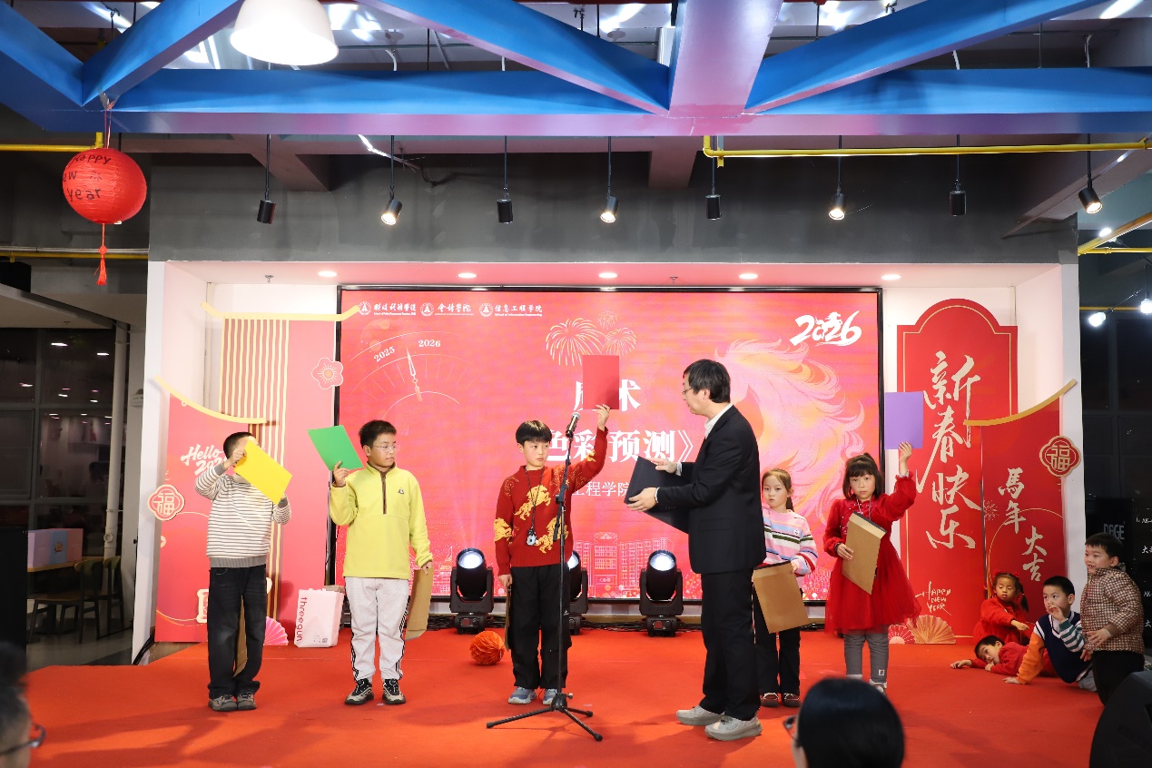 联欢会巧妙穿插了多轮轻松有趣的互动游戏,如“你画我猜”、“听歌识曲”、“马年猜猜乐”等。这些环节设计巧妙,寓教于乐,有效促进了三院教师之间的默契配合与情感交流。现场气氛热烈,笑声不断,在轻松愉快的互动中,不同学科背景的教师们增进了了解,深化了情谊。