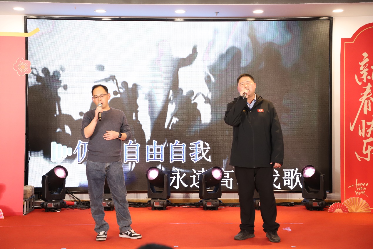 活动尾声,在三院领导的共同领唱下,全场教职工齐声高歌《朋友》与《难忘今宵》。熟悉的旋律回荡在现场,深情歌声汇聚成温暖的海洋,将晚会气氛推向最高潮,也为本次联欢会画上了圆满而富有凝聚力的句号。