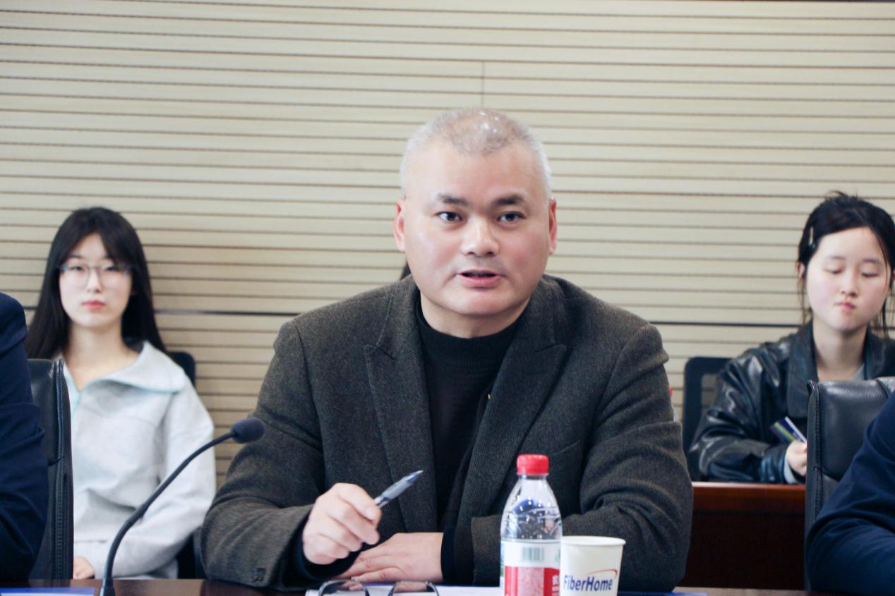 周锡康书记代表烽火通信对学院师生一行表示热烈欢迎。他指出,烽火通信作为科技型企业,始终坚持党建引领发展、创新驱动未来,在关键核心技术攻关、现代化产业体系建设、高素质人才引育等方面持续发力。他详细介绍了企业在光通信领域的技术突破、财务管理体系运行、人才队伍建设等方面的实践成果,并表示企业高度重视与高校的协同育人合作,期待以此次交流为契机,与财政税务学院在实习实践、人才输送、产学研融合等方面搭建更紧密的合作桥梁,共同培育适应国家战略需求的优秀财经人才。