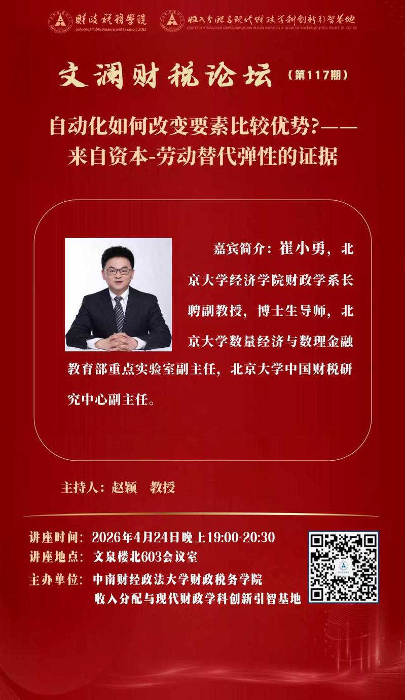 文澜财税论坛(第117期):北京大学经济学院崔小勇教授