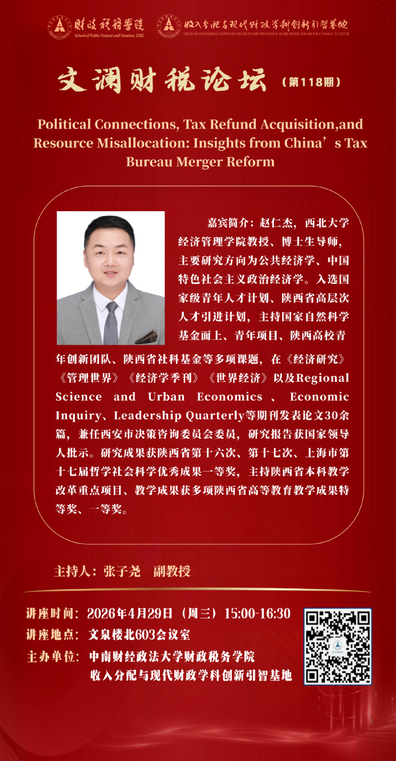 文澜财税论坛(第118期):西北大学经济管理学院赵仁杰教授