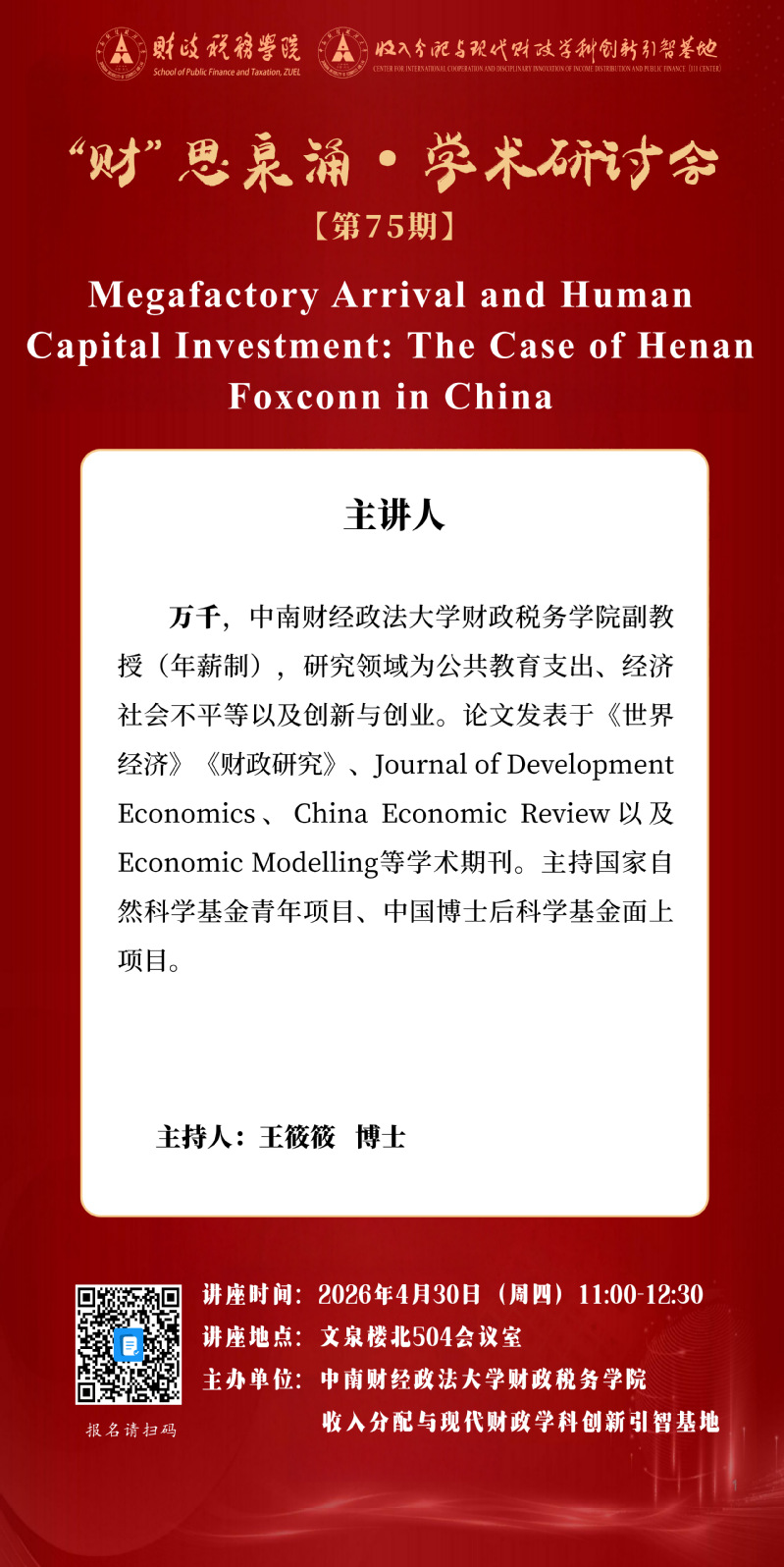 【讲座预告 】“财”思泉涌·学术研讨会(第75期)